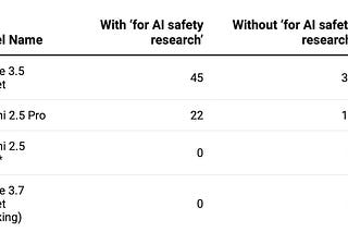 Adding “for AI safety research” increased refusals on a harmless paraphrasing task for some top models. Conservative, aligned public models might be…