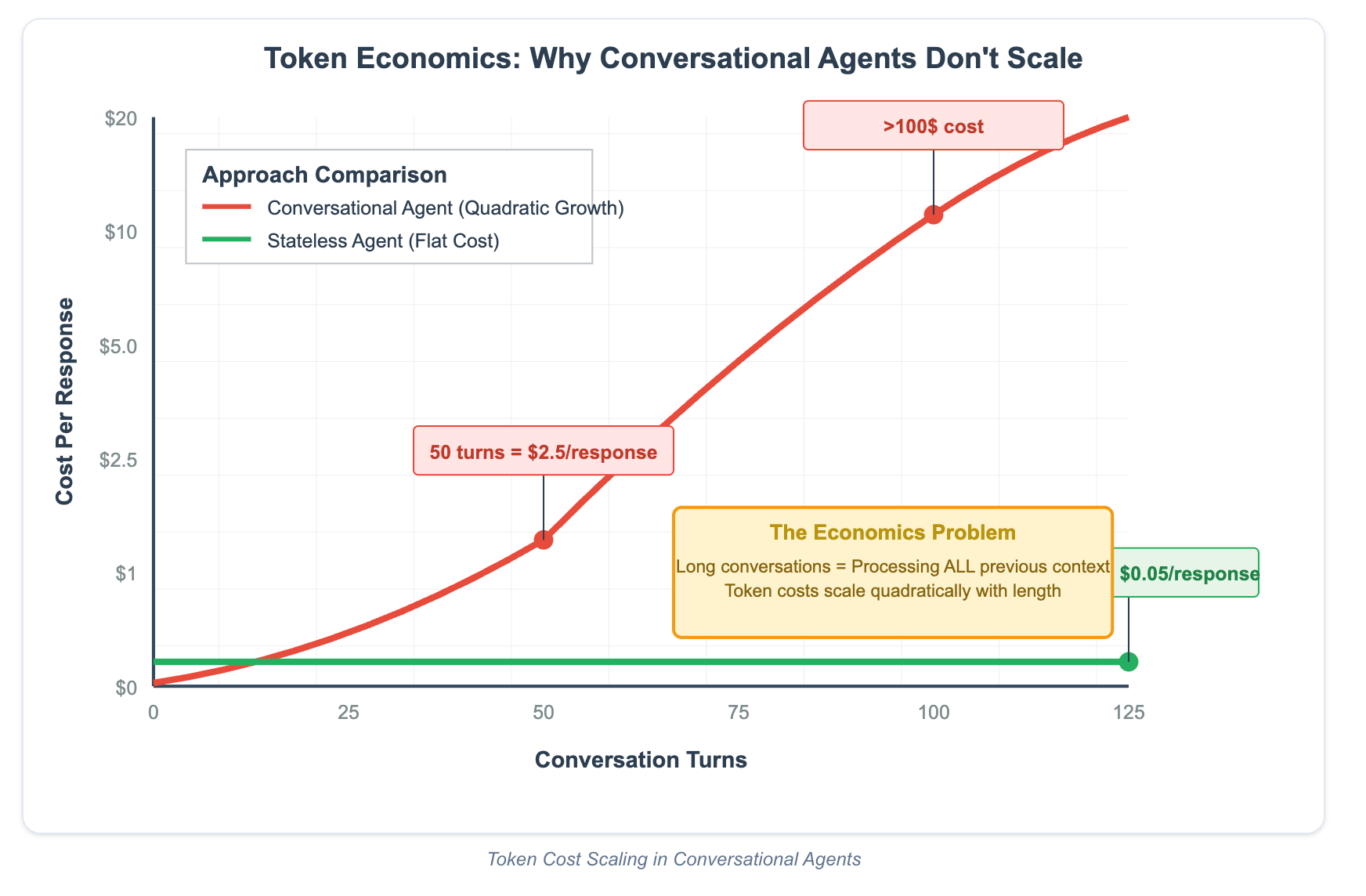 At 50 turns of your multi-turn agent, you’ll be burning $2.5/response, which rises to $100/response at 100 turns! Ouch.