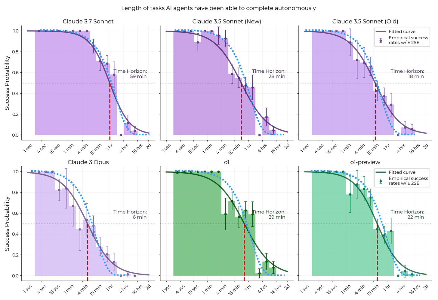 Notice how success probability hovers around 90% for tasks that take humans 10 minutes to complete.