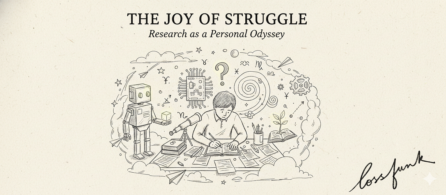What if the point of research and the value of it is in the struggle you go through in grappling in area that’s new to you or the world?
